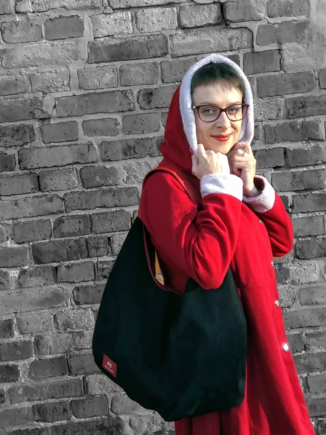 Mój mąż postanowił się pobawić… i taki jest efekt 🙂 Płaszczyk dotarł w momencie, kiedy już się nim nie nacieszyłam, bo zrobiło się na niego stanowczo zbyt chłodno… Ale jako pani Mikołajowa mogę w nim wystąpić… Jest bardzo przyjemny i ładny, ale niestety cienki. No i muszę przyznać, że chyba nie do końca wierzę w swoje wymiary, bo jest odrobinę zbyt duży. Dlatego na mnie nie wygląda tak dobrze, jak na zdjęciu w sklepie.