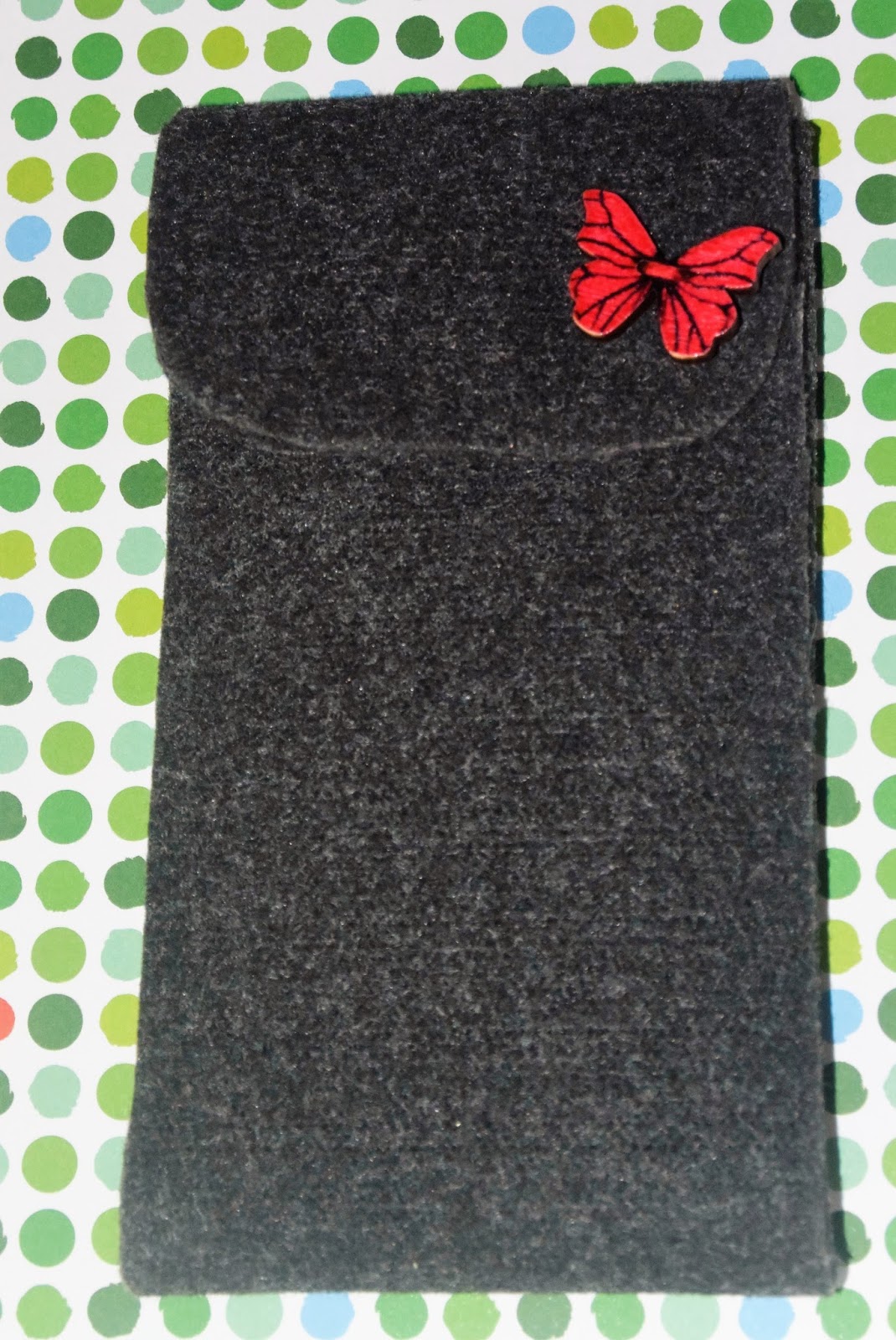 Wszystko okazało się banalnie proste. Właściwie najtrudniej było mi zdecydować jakie to etui ma być… a pomysłów miałam tak wiele! ale w końcu stanęło na klasycznym wzorze, nie chciałam też rzucającego się w oczy koloru… bo miałam ochotę ozdobić go motylem, początkowo motyl miał być turkusowy, ale koniec końców wybrałam czerwonego!