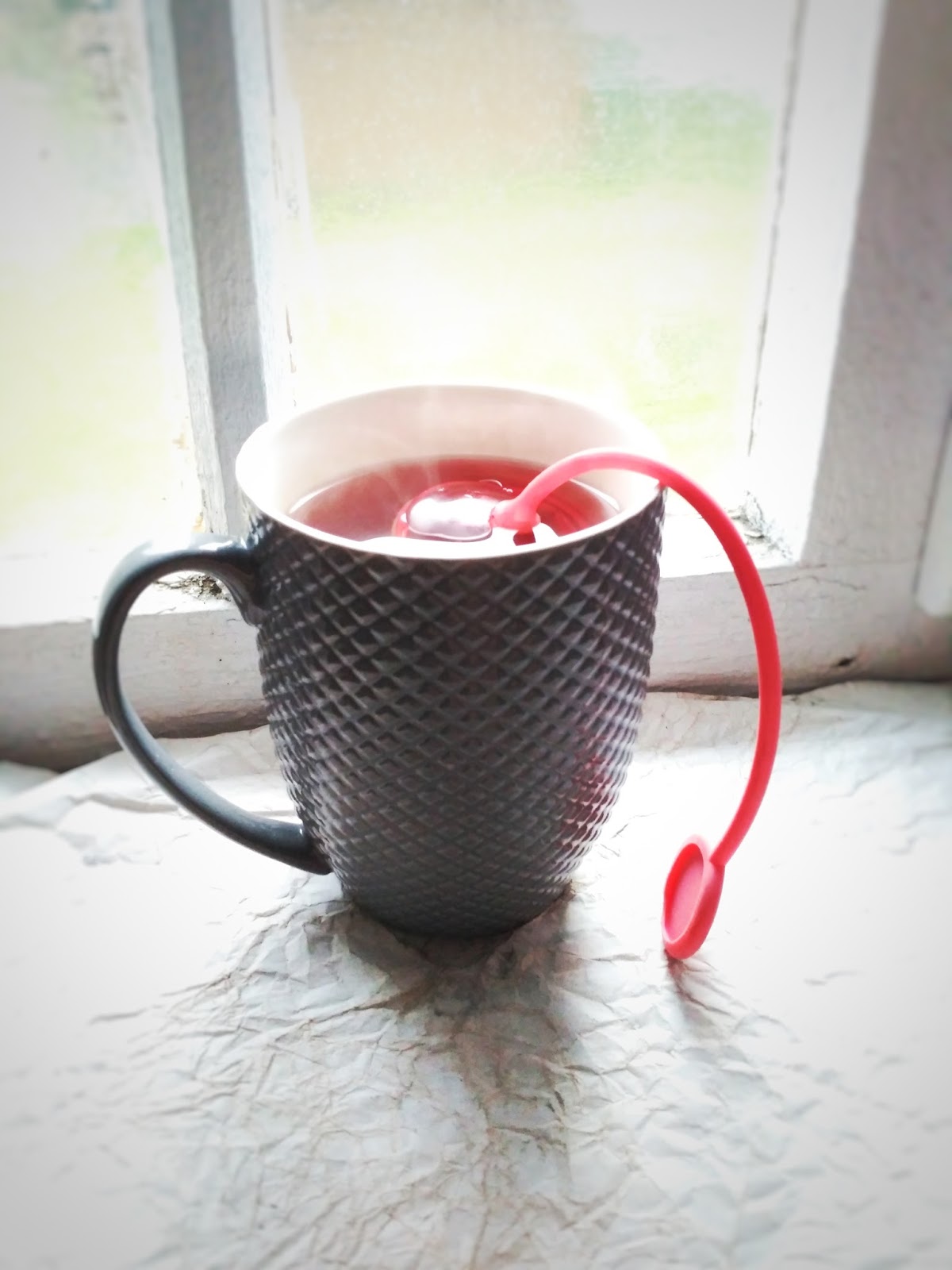 Zaparzacz silikonowy był moim drugim nabytkiem (mam trzy kolory) i po truskawce był fajną odmianą… Szczególnie jeśli w domu wszyscy piją herbatę to te są niewielkie, mają wiele kolorów i są poręczne w podróży. Moje akurat mają takie dość „wyblakłe”, czyli pastelowe kolory i myślałam, że może będą się odbarwiać, ale tak się nie dzieje, a znalazłam też w bardzo intensywnych kolorach. Mój zaparzacz jest bardzo prosty, ale silikonowych jest chyba najwięcej, a wzorów jest całe mnóstwo, również takich zabawnych!