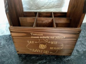 Wykonany starannie, solidnie, z otwieraczem na bocznej ściance. I milion możliwości graweru. Nie skłamię jeśli przyznam, że wybór napisu zajął mi więcej czasu niż firmie dostarczenie paczki!