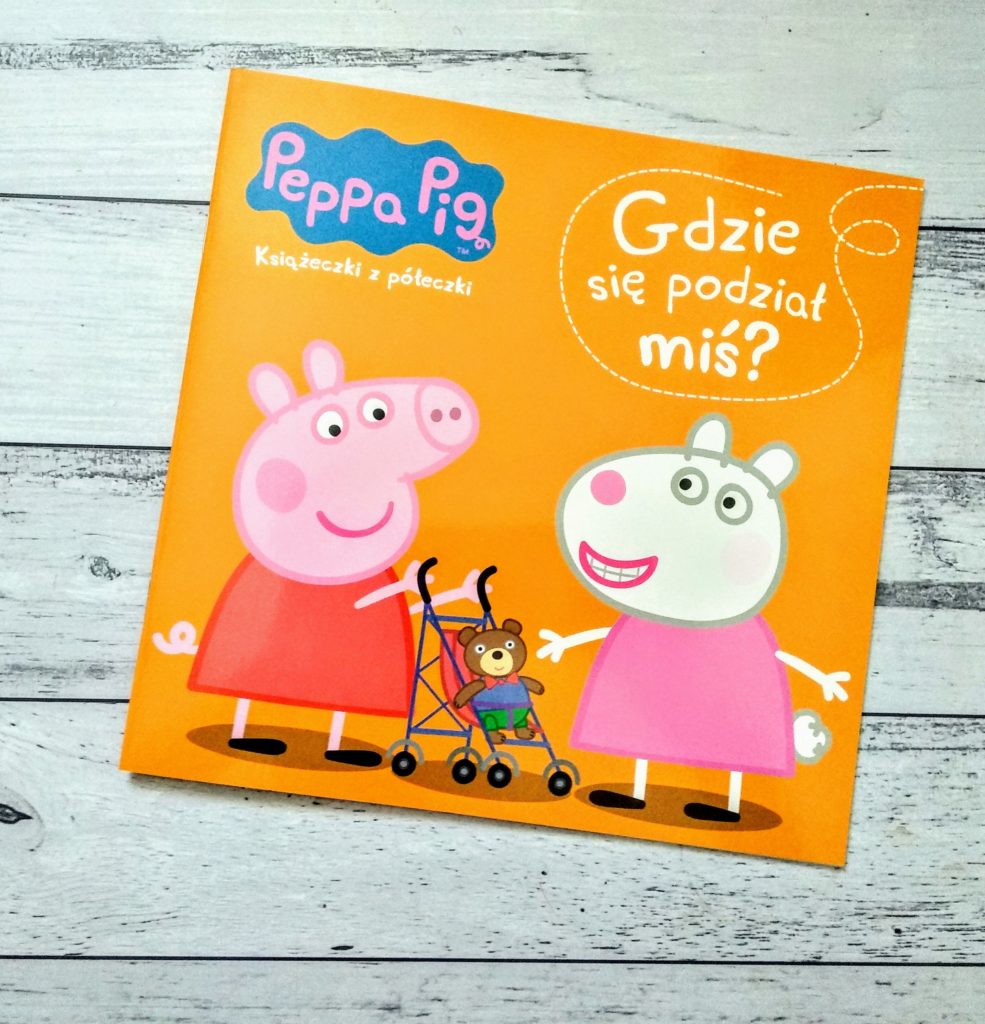 „Gdzie się podział miś?” to historia przedszkolnego misia, który wraz z walizką odwiedza swoich małych przyjaciół w domach. W teczce znajduje się album, do którego wkleja się zdjęcia z tych odwiedzin. Dzieciaki zabierają go w podróże małe i duże, ale Peppa nie ma możliwości odwiedzenia Paryża ani innych zakątków świata. Zabiera go więc do supermarketu! Zanosi się na nudną wyprawę, ale… miś się gubi! Rozpoczynają się więc poszukiwania…