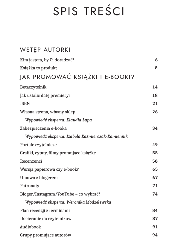 „Promocja? Tak, poproszę” to książka, która przeprowadzi Cię przez działania promocyjne od momentu, gdy jeszcze piszesz aż do działań popremierowych. Na jej końcu znajdziesz dodatkowych 6 stron checklist, które pokazują krok po kroku jak planować promocję.