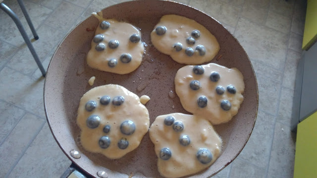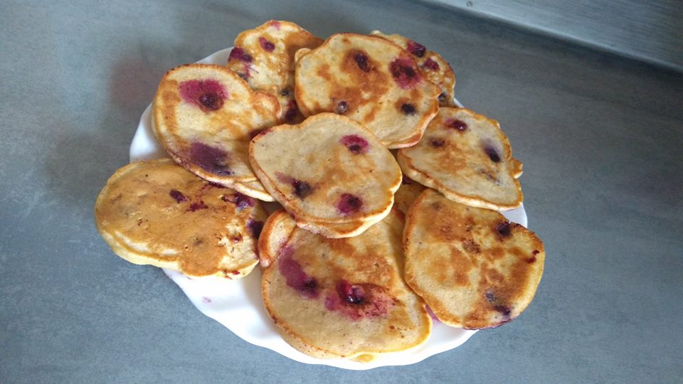 Ale można teraz też poszaleć – w sezonie dodaję świeże owoce. Najbardziej lubię placki z jagodami/borówkami. Borówka amerykańska ma taki plus, że nie zabarwi naszych placków.