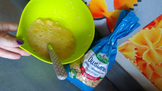 Co zrobić żeby placki były bardziej fit? Ano możemy zamiast mąki dodać płatki owsiane. Chociaż trochę.