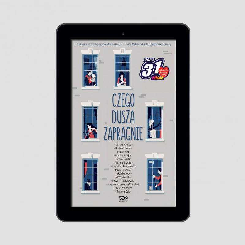 Wydawnictwo SQN w tym roku wydało już kolejnego e-booka z opowiadaniami. To 14 autorów biorących udział w akcji! W zeszłym roku na 30. finał wydawnictwo chciało zebrać 30 tysięcy złotych – zebrali 31 300 zł. W tym roku na 31. finał celem jest 31 tysięcy złotych. Zbiórka trwa do 29 stycznia i można kupić tegoroczny e-book oraz zeszłoroczny. za 10,50zł, 21 zł lub 31,50zł – Ty decydujesz ile chcesz zapłacić. A poniżej lista autorów biorących udział w tegorocznej akcji „Czego dusza zapragnie”: