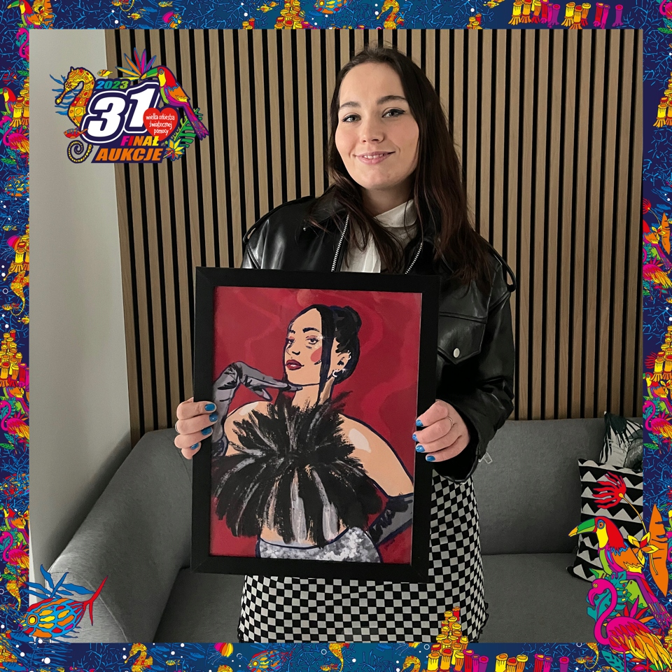 Piękna grafika z jej podobizną oraz książka „Jestem Marysia i chyba się zabiję dzisiaj” z autografem. Autorką grafiki jest Justyna Łaciok, a w opisie aukcji można przeczytać jak powstał ten prezent.