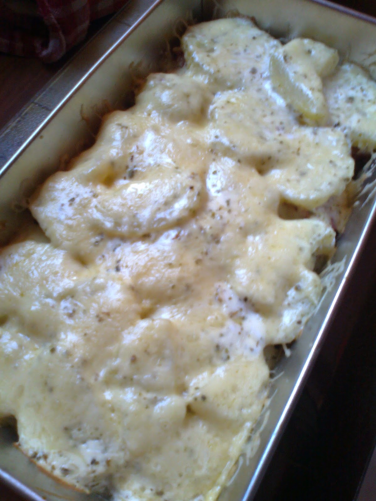 serem. Układamy drugą warstwę ziemniaków i resztę kiełbasy. Następna warstwa to